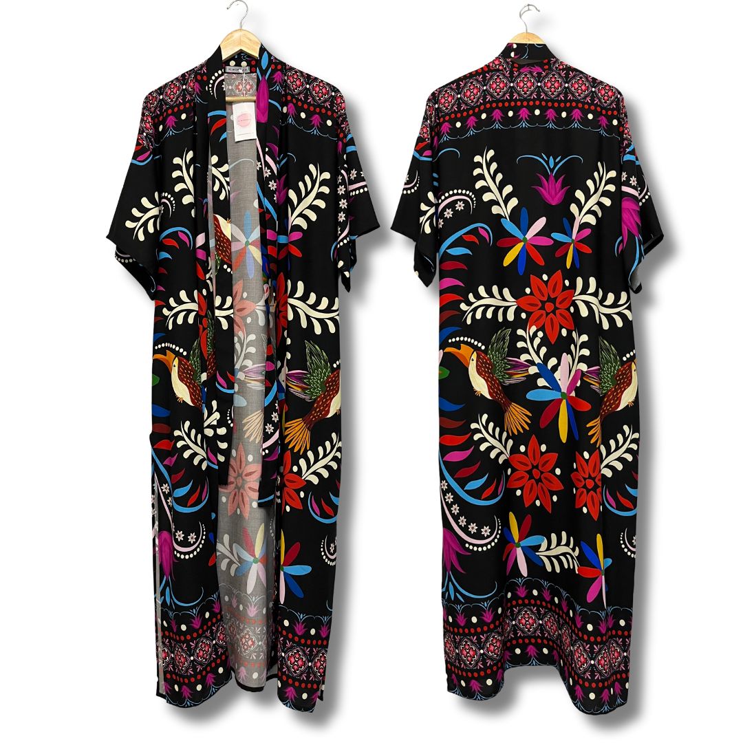 - Modelo Lírio: kimono longo na estampa encanto do entardecer