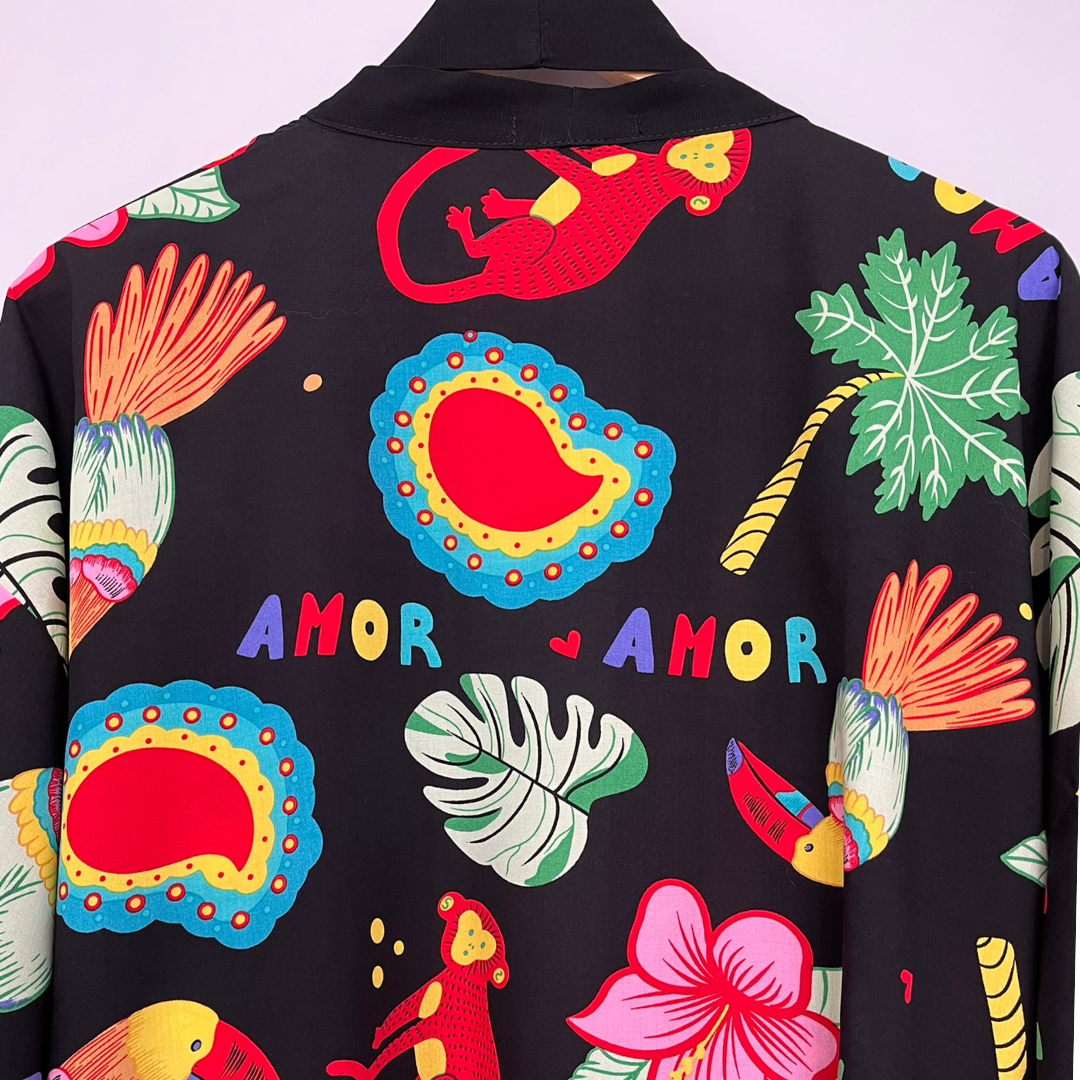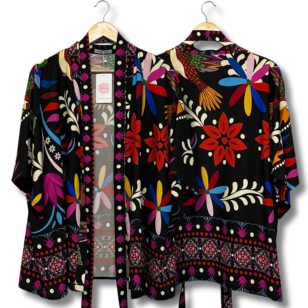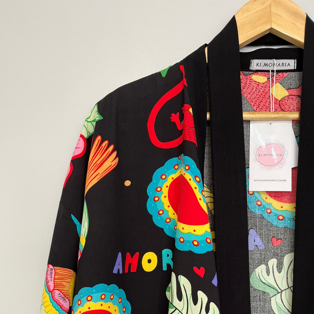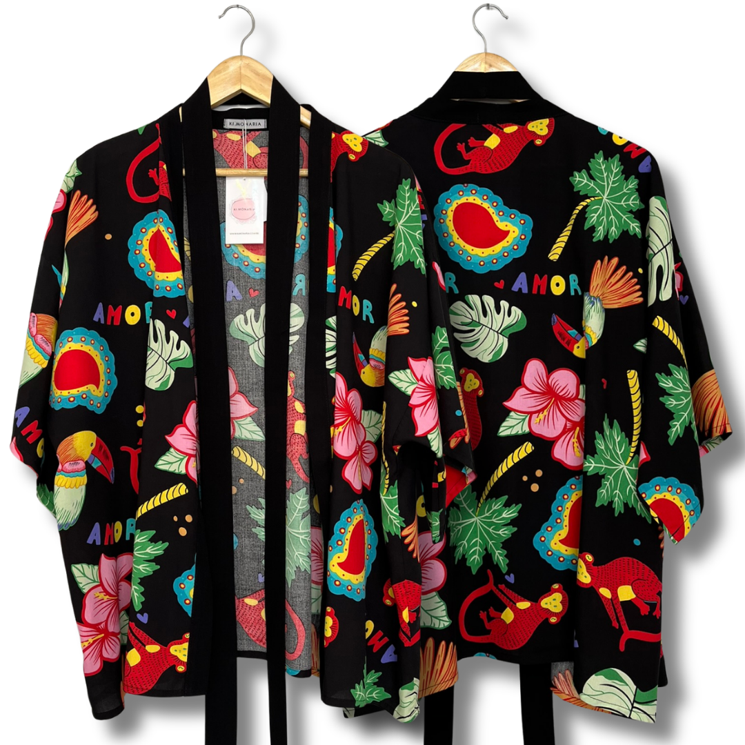 - Modelo Peônia: kimono curto na estampa fauna encantada